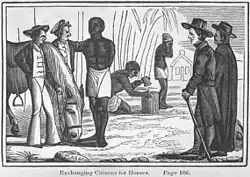 Il est généralement admis que les ventes d'esclaves ont été responsables de la majorité des déplacements d'esclaves vers l'ouest[Note 4]. Les déplacements des familles de propriétaire d'esclaves étaient eux-mêmes minoritaires et seule une minorité d'esclaves a pu suivre les pas de ses maîtres en préservant son unité familiale[réf. souhaitée]. Par ailleurs, même si, en vue de créer une force de travail capable de se reproduire, les marchands d'esclaves emportaient généralement un nombre égal d'hommes et de femmes, ils avaient peu intérêt à déplacer des familles entières[réf. souhaitée][pourquoi ?]. La traite devint la plus vaste entreprise du Sud, en dehors des plantations elles-mêmes, et probablement la plus sophistiquée dans son emploi de moyens de transports modernes, de circuits de financement innovants et de la publicité. Cette industrie développa son propre langage composé de termes tels que première main (prime hands) ou bucks (dollars en argot)[37]… Le développement de la traite négrière terrestre au sein de l'Union et l'arrêt de la traite maritime en 1808 provoquèrent une hausse du prix des esclaves qui contribua notamment à relancer économiquement les États côtiers[38].