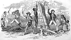 Dans les grandes plantations, les régisseurs étaient autorisés à fouetter et brutaliser les esclaves désobéissants. Parmi les châtiments utilisés figurent les privations, les travaux supplémentaires, le marquage au fer rouge pour les fugitifs, la castration ou les mutilations. Les codes de l'esclavage autorisaient et requéraient même l'usage de la violence[réf. souhaitée]. Esclaves comme Noirs libres étaient soumis au code noir et voyaient leurs mouvements surveillés par des patrouilles composées de trois ou six conscrits blancs, autorisés à infliger des châtiments sommaires, pouvant aller jusqu'à la mutilation ou la mort, contre les échappés[réf. souhaitée]. En plus des violences physiques ou de la mort, les esclaves étaient placés sous la menace constante de perdre un membre de leur famille si le propriétaire décidait d'une vente[61]. Cependant, si l'esclave n'avait aucun droit et pouvait être sévèrement puni, le planteur n'avait pas intérêt à maltraiter ses esclaves : les traces de fouet diminuaient la valeur marchande de l'esclave car elles donnaient à penser qu'il était insoumis ou paresseux[62]. Le propriétaire se considérant comme un aristocrate, il se devait de respecter un code de conduite morale et devait en principe s'abstenir de toute cruauté gratuite[62].