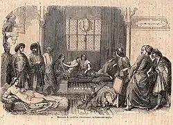 Réduites en esclavage, les femmes étaient vendus aussi bien aux roturiers qu'à l'élite, dont les membres du palais impérial. Les médias turcs contemporains négligent souvent l'esclavage des femmes, qu'elles soient issues de l'élite ou du peuple, et se concentrent davantage sur les esclaves relativement privilégiées du harem impérial ottoman ou sur les esclaves qui ont accédé à un statut élevé[43]. Cependant, des descriptions de l'époque ottomane mentionnent des esclaves appartenant à des roturiers dans des récits d'esclaves contemporains, des récits de voyageurs[44],[45],[40],[46], des chansons folkloriques[47],[48], des romans turcs ottomans tardifs[49],[50] et des poèmes des XIXe et XXe siècles[44]. Ainsi, en histoire comme dans les études classiques sur l'historiographie ottomane, les esclaves non élites et les femmes sont sous-représentés[43].