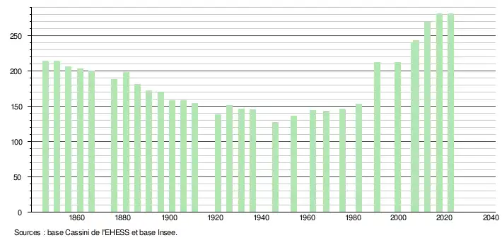 - ↑ Population municipale de référence en vigueur au 1er janvier 2025, millésimée 2022, définie dans les limites territoriales en vigueur au 1er janvier 2024, date de référence statistique : 1er janvier 2022.