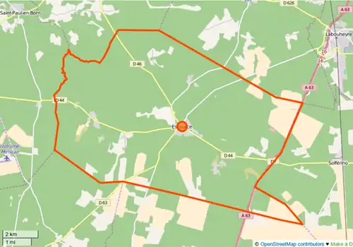 Les communes limitrophes sont Lüe, Mézos, Onesse-Laharie, Pontenx-les-Forges, Saint-Paul-en-Born et Solférino.