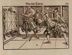 - la notion de coup de maître (meisterhau), initialement des techniques secrètes réservées à des initiés, qui consistent à parer un coup adverse et à blesser l'adversaire, simultanément.