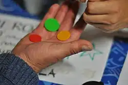 - un rectangle de dimensions 3/2 de couleur verte, symbolisant l'espoir. Le vert utilisé ne fait pas l'objet d'une décision officielle, mais la teinte la plus souvent utilisée est 0x009900 ;