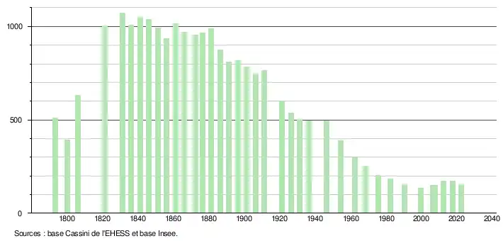 - ↑ Fiches Insee - Populations de référence de la commune pour les années 2006, 2007, 2008, 2009, 2010, 2011, 2012, 2013, 2014, 2015, 2016, 2017, 2018, 2019, 2020, 2021 et 2022.