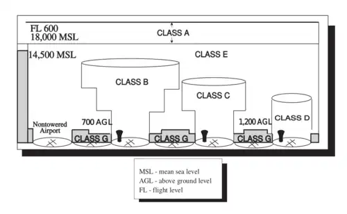 Une classe d'espace aérien est attribuée à chacun de ces espaces en fonction de l'importance du trafic IFR et VFR et du besoin d'une plus ou moins grande ségrégation des différents flux de trafic.