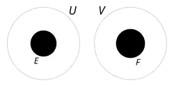 - Un espace topologique X est T4 si, et seulement si, pour tout fermé F de X et tout ouvert O contenant F, il existe un ouvert U contenant F tel que l'adhérence de U soit incluse dans O[6] :
