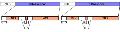 - ↑ D. Delcasso-Tremousaygue et al., « Structural and transcriptional characterization of the external spacer of a ribosomal RNA nuclear gene from a higher plant », Eur. J. Biochem., (1988), 172, p. 767-776