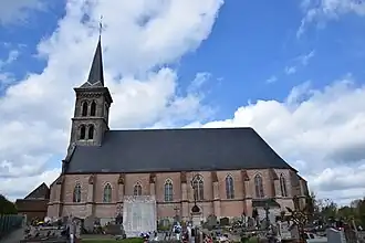 - Église dédiée à saint Martin, construite en briques et constituée d'un long vaisseau qui s'achève par une abside à cinq pans, datant de la première moitié du XVIe siècle avec des vitraux de la même période. Le clocher en façade a été construit entre 1870 et 1872 en remplacement de l'ouvrage d'origine situé au centre de l'édifice.