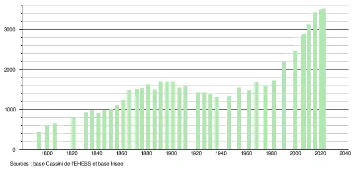 - ↑ Fiches Insee - Populations de référence de la commune pour les années 2006, 2007, 2008, 2009, 2010, 2011, 2012, 2013, 2014, 2015, 2016, 2017, 2018, 2019, 2020, 2021 et 2022.