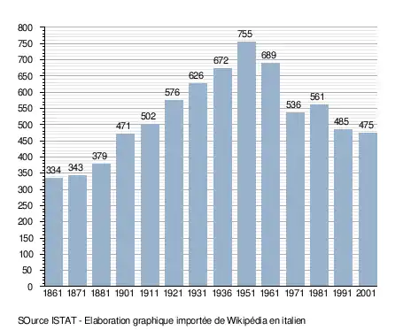 - ↑ (it) Popolazione residente e bilancio demografico sur le site de l'ISTAT.