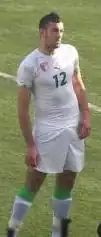 Belkalem avec l'équipe d'Algérie en 2014. | ||