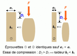 L'essai de compression comporte un raccourcissement élastique d'une éprouvette généralement cylindrique et son écrasement au-delà de la limite d'élasticité du matériau.