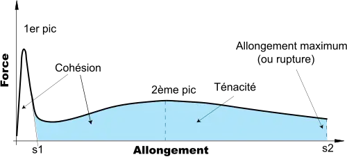 - La cohésion : l’énergie totale exercée au cours de l’essai, à savoir l’aire sous la courbe : .