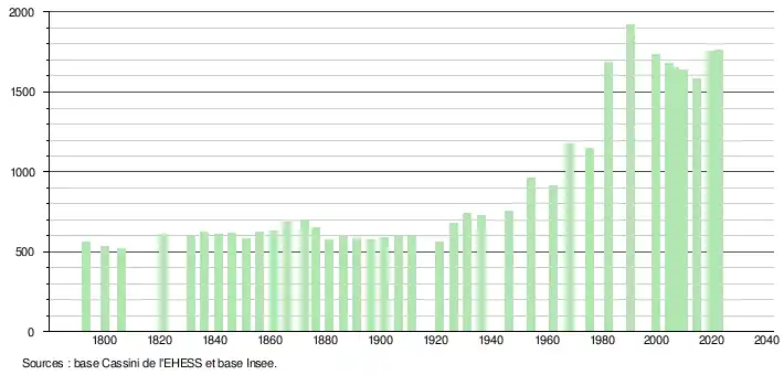 - ↑ Fiches Insee - Populations de référence de la commune pour les années 2006, 2007, 2008, 2009, 2010, 2011, 2012, 2013, 2014, 2015, 2016, 2017, 2018, 2019, 2020, 2021 et 2022.
