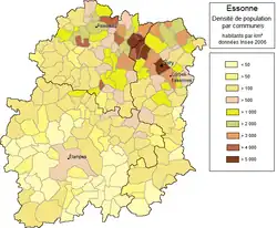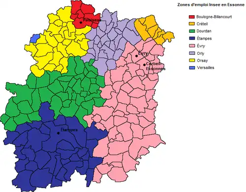 Le département de l'Essonne (/ɛ.sɔn/[Note 1] ) est un département français situé au sud de Paris, dans la région Île-de-France. Il est pour partie intégré à l'agglomération parisienne et tire son nom de la rivière Essonne dont le cours traverse le territoire du département selon un axe sud-nord jusqu'à sa confluence avec la Seine.