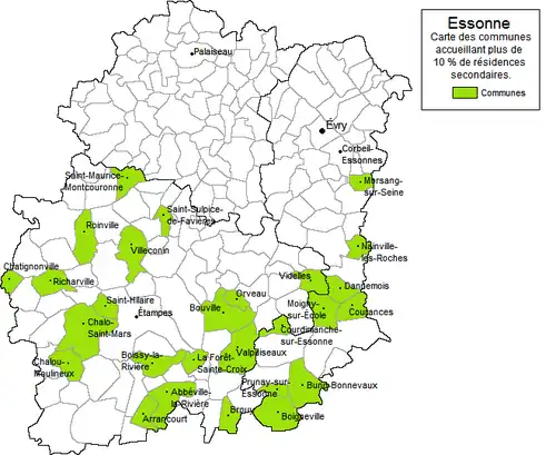 Outre la préfecture Évry-Courcouronnes et les chefs-lieux Corbeil-Essonnes, Étampes et Palaiseau, plusieurs cités apparaissent comme caractéristiques du département par leurs importance historique, culturelle, économique et administrative, soit Arpajon, Dourdan, La Ferté-Alais, Milly-la-Forêt et Montlhéry.