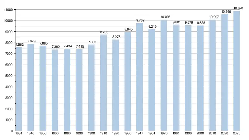 Les chiffres des années 1831 à 1970 tiennent compte des chiffres des anciennes communes fusionnées.