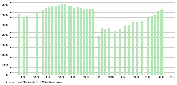 - ↑ Population municipale de référence en vigueur au 1er janvier 2025, millésimée 2022, définie dans les limites territoriales en vigueur au 1er janvier 2024, date de référence statistique : 1er janvier 2022.