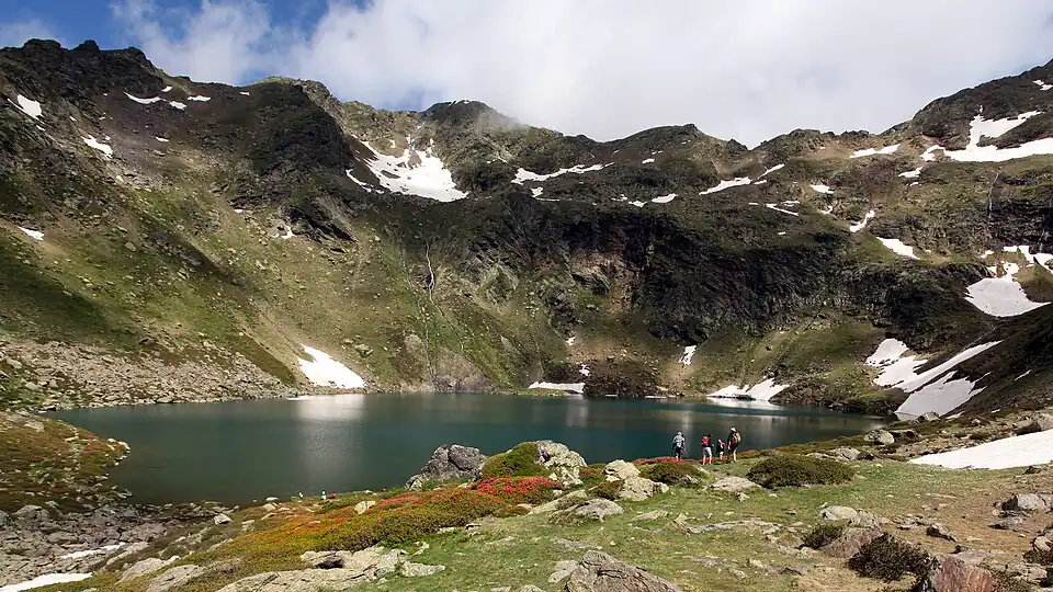 - Estany de Més Amunt, le plus grand, de forme circulaire[15], situé à 2 306 m d'altitude et d'une surface de 12,1 ha[14]. Il s'agit du troisième lac le plus étendu d'Andorre derrière l'Estany Primer de Juclar et l'Estany de l'Illa[14].