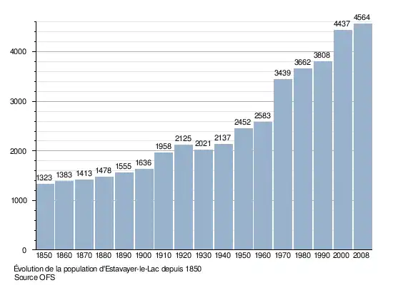 Le graphique suivant résume l'évolution de la population d'Estavayer-le-Lac entre 1850 et 2008[4] :