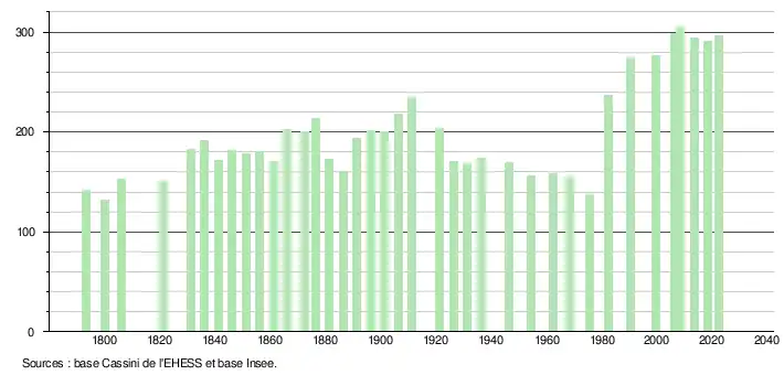 - ↑ Fiches Insee - Populations de référence de la commune pour les années 2006, 2007, 2008, 2009, 2010, 2011, 2012, 2013, 2014, 2015, 2016, 2017, 2018, 2019, 2020, 2021 et 2022.