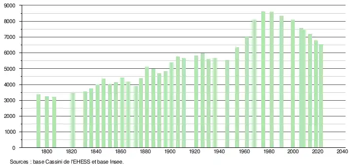 - ↑ Population municipale de référence en vigueur au 1er janvier 2025, millésimée 2022, définie dans les limites territoriales en vigueur au 1er janvier 2024, date de référence statistique : 1er janvier 2022.