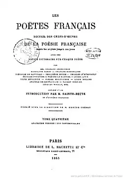 - Les Poëtes français, 4 tomes, du XIIe siècle au XIXe siècle, éditions Gide, Paris, 1861[7].