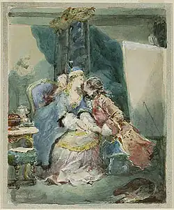 - Une soirée chez le duc d'Orléans, 1843, aquarelle et gouache, 35 x 57.2 cm, musée du Louvre.