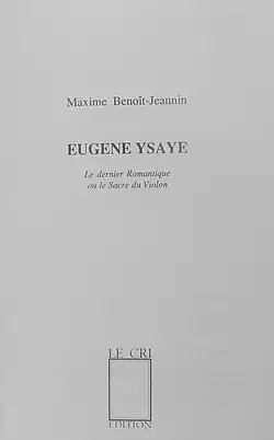 • Maxime-Benoît Jeannin, Eugène Ysaye : Le dernier romantique ou Le sacre du violon, Bruxelles : Le Cri, 1989 (ISBN 2-87106-021-5)