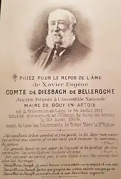 - Henri de Diesbach de Belleroche (Gouy en Artois, 21 janvier 1861 - ibid. 15 janvier 1906), marié en 1893 avec Ernestine de Gourcy Sérainchamps (1870-1956), dont postérité[3].