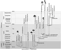 - ↑ (en) Jeffrey A. Wilson, « Redescription and reassessment of the phylogenetic affinities of Euhelopus zdanskyi (Dinosauria:Sauropoda) from the Early Cretaceous of China », Journal of Systematic Palaeontology, vol. 7, no 2, , p. 199–239 (DOI 10.1017/S1477201908002691)