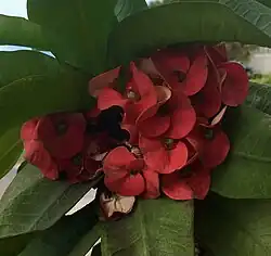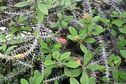 La couronne d'épines encore appelée couronne du Christ ou épine du Christ (en raison des épines, mais aussi des fleurs rouges évoquant des gouttes de sang) (Euphorbia milii) est une espèce d'arbuste épineux vivace de la famille des Euphorbiacées, qui peut atteindre 1,5m.