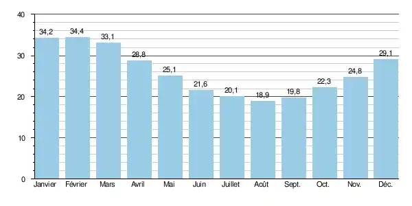 | Eure | Ver-lès-Chartres (1969-1985)[BH 2] | 2,39 | 0,260 | 18 | 25 | 30 | 34 | - | 1,55 | - | 31,4 | 133 | 568 |