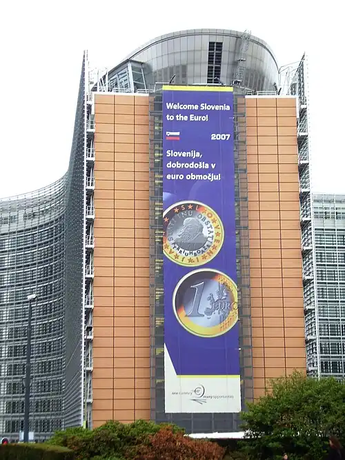 - ↑ Adhésion de la Slovénie à l'euro, sur le portail de l'Union européenne.