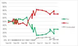 | Date | Oui | Non | Sans opinion | Nombre de personnes interrogées | Institut de sondage |