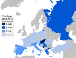 Huit fédérations peuvent inscrire trois clubs. Elles sont déterminées par le classement des équipes du tour préliminaire de l'Euroligue précédente. Dans leur cas, le troisième participe au premier tour et le vice-champion au second tour. Le champion national est directement qualifié pour le tour préliminaire. Pour la saison 2009-2010, il s'agit de la Croatie, de l'Espagne, de la Grèce, de la Hongrie, de l'Italie, du Monténégro, de la Russie et de la Serbie.