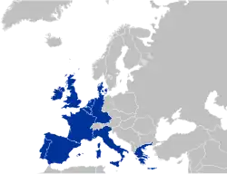 Il s’agit de (par ordre d'entrée et par ordre alphabétique) : Allemagne de l’Ouest, Belgique, France, Italie, Luxembourg, Pays-Bas, Danemark, Irlande, Royaume-Uni, Grèce, Espagne et Portugal.