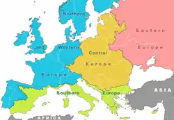 Le terme Europe médiane désigne, dans certains ouvrages comme Fragments d'Europe[1], des pays européens situés entre les pays germanophones et russophones. Il n'y a pas de plein accord entre les auteurs au sujet des pays à inclure dans cet ensemble : certains y comptent l'ensemble des PECO (« pays d'Europe centrale et orientale ») et même la Grèce, d'autres en excluent, par exemple, l'Estonie, la Lettonie, la Bosnie-Herzégovine. Les auteurs germanophones n'y incluent que les pays ayant des frontières communes avec l'Allemagne ou l'Autriche.
