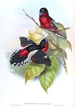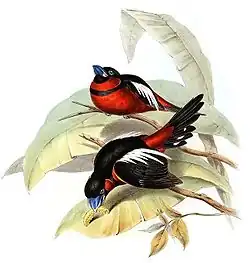 - ↑ Collectif, Histoire naturelle, Flammarion, , 650 p. (ISBN 978-2-0813-7859-9), Eurylaime rouge et noir page 482
