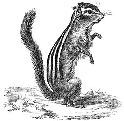 Dessin d'un Tamias sibiricus, décrit dans un ouvrage allemand du XIXe siècle comme étant Das sibirische Backenhörnchen (Tamias Pallasii, Baird.) Fig. 31. dans Illustrierter Leitfaden der Naturgeschichte des Thierreiches, 1876.