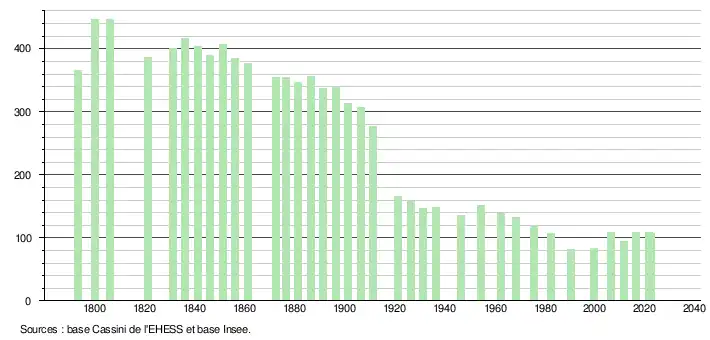 - ↑ Population municipale de référence en vigueur au 1er janvier 2025, millésimée 2022, définie dans les limites territoriales en vigueur au 1er janvier 2024, date de référence statistique : 1er janvier 2022.