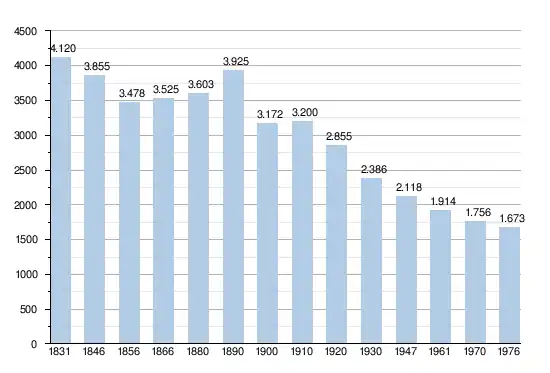 - Sources : INS, Rem. : 1831 jusqu'en 1970 = recensements, 1976 = nombre d'habitants au 31 décembre[2].