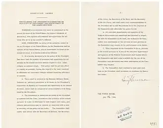 | Titre | Executive order Establishing the President's Committee on Equality of Treatment and Opportunity In the Armed Forces. |