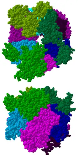 - ↑ Lorentzen et al., « The archaeal exosome core is a hexameric ring structure with three catalytic subunits », Nature Structural & Molecular Biology, vol. 12, , p. 575–81 (PMID 15951817, DOI 10.1038/nsmb952)