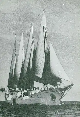 L'expédition s'est déroulée à bord du nouveau navire-école Albatross, un schooner de 70 mètres de long et 11 mètres de large, de 1 400 tonnes, à moteur de 600 chevaux et à voile combiné. La ligne Boström (Broströmskoncernen (sv)) venait juste de construire le navire afin de former ses futurs officiers et le prête, grâce à Herbert Jacobsson, avec son équipage, pour l'expédition[2].