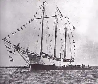 Après une croisière d'essai d'un mois dans l'Atlantique Nord, le Fram se rendit à Kristiansand à la fin du mois de juillet 1910 pour embarquer les chiens et achever les préparatifs. Il y reçut une offre d'aide de Peter « Don Pedro » Christopherson, un expatrié norvégien vivant en Argentine dont le frère était ambassadeur à Buenos Aires : du carburant et des provisions pour le Fram à Montevideo ou à Buenos Aires, offre qu'Amundsen accepta avec gratitude[63]. Juste avant le départ le 9 août, Amundsen révéla la véritable destination de l'expédition aux deux officiers subalternes, Prestrud et Gjertsen. Lors de la traversée de quatre semaines vers Funchal sur l'île de Madère, un sentiment de doute se développa au sein de l'équipage qui ne comprenait pas certains préparatifs et dont les questions recevaient des réponses évasives de la part des officiers. Le biographe d'Amundsen Roland Huntford écrivit que cela était « suffisant pour générer de la suspicion et affaiblir le moral[64] ».