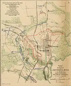 Le , l'armée de l'Union a pris position autour de Jackson. Le plus dur combat se déroule le pendant une attaque manquée. Le brigadier général Jacob G. Lauman ordonne à une brigade sous le commandement du colonel Isaac C. Pugh (en) d'attaquer les ouvrages confédérés tenus par la brigade du brigadier général Daniel W. Adams (en). À l'issue, Lauman est relevé de son commandement pour n'avoir pas réussi à exécuter correctement les ordres de son supérieur le major général E.O.C. Ord, ce qui a entraîné de lourdes pertes[2]. Plutôt que de risquer l'encerclement, Johnston choisit d'évacuer la capitale de l'État et se retire le . Les forces de Sherman occupent la ville le lendemain.