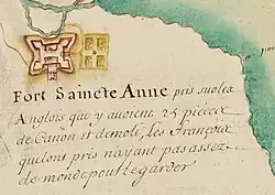 - ↑ Ils ont fait vœu de donner chacun 40 sols pour la réparation de la chapelle Sainte-Anne de la côte de Beaupré, où ils devront suspendre comme trophée le drapeau du fort. La Roncière 1930, p. 71.