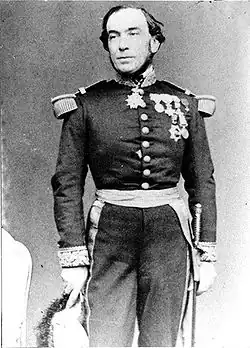 - ↑ Corvette à hélice, lancée à Brest en 1852. Déplacement : 1 800 tonnes (L : 60m. l : 11m.). Armée de quatre canons-obusiers de 220mm et de six canons de 160mm modèle 1858. Elle est commandée par le capitaine de frégate Bochet, avec deux cent hommes d’équipage.