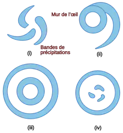 Les vols dans les ouragans permettent ainsi de voir et mesurer quatre étapes de la vie d'un cyclone tropical comme montré dans l'image : (i) formation de bandes d'orages en rotation autour d'un centre de base pression, (ii) formation de l’œil et intensification des bandes, (iii) formation d'un nouveau mur d’œil à partir des bandes de pluie et (iv) remplacement du vieux mur par le nouveau avec affaiblissement du cyclone.